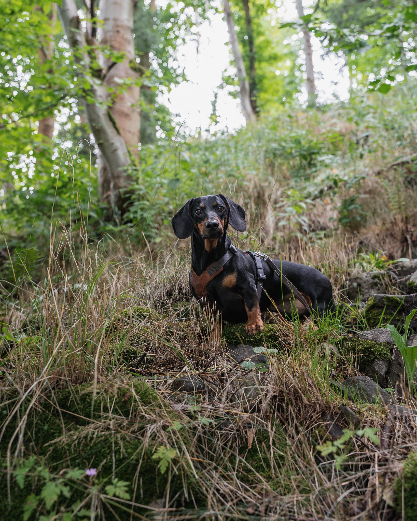 Für uns und Manni war das Gelände der perfekte Einstieg. Die Wege rund um diese Naturdenkmäler sind gut ausgebaut, was uns einen entspannten Start ermöglichte. Während wir über die geometrischen Formen der Steine staunten, nutzte Manni jede Gelegenheit, die neuen Gerüche des Waldes aufzusaugen. Es ist ein faszinierender Anblick, diese massiven Säulen vor sich zu haben, und natürlich mussten wir hier die ersten Fotos schießen, bevor wir dem Pfad weiter nach oben folgten.