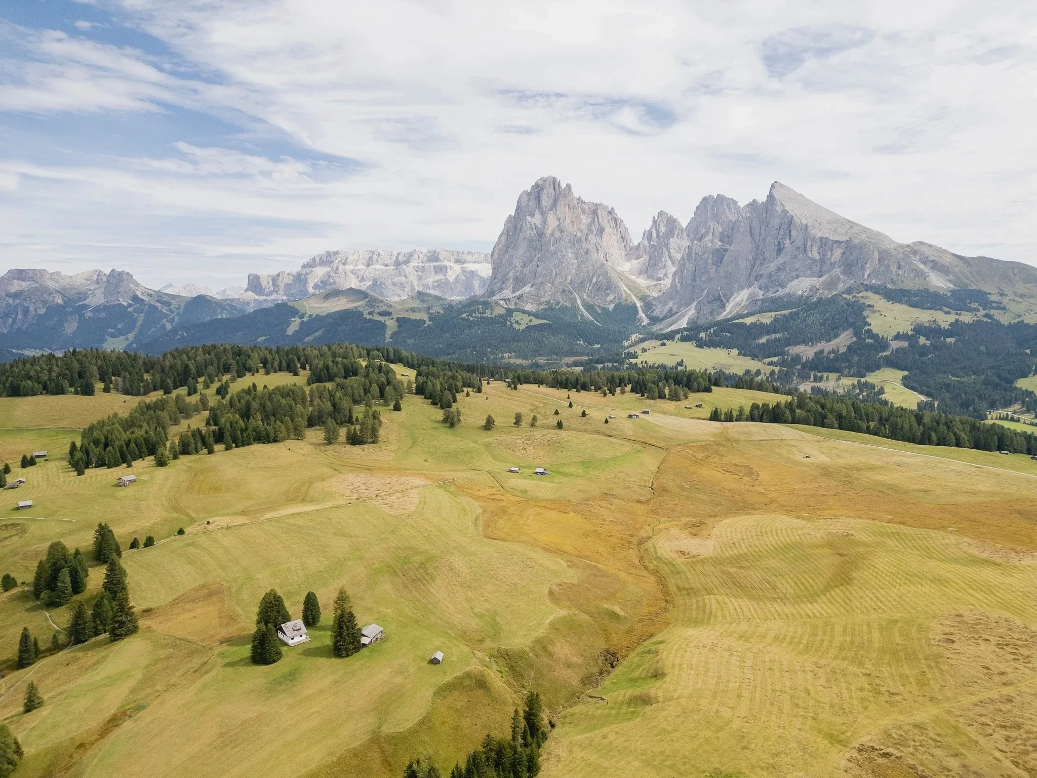 Seiser Alm mit Blick auf den Langkofel und Plattkofel